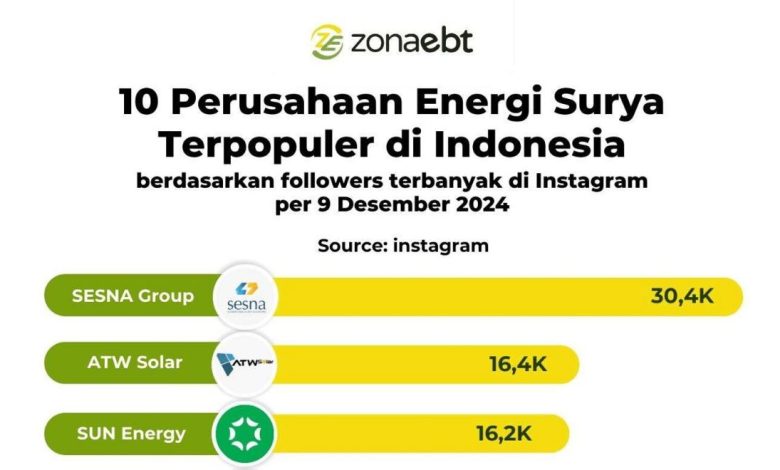Berikut daftar perusahaan energi surya di Indonesia dengan followers Instagram terbanyak per 9 Desember 2024: