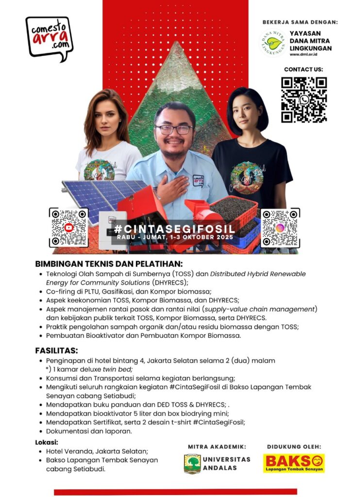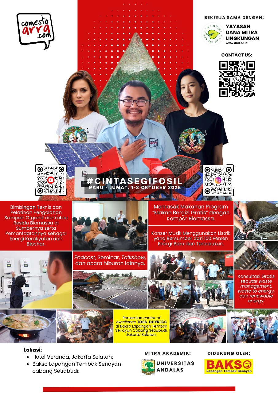 Indonesia menghadapi tantangan besar dalam pengelolaan sampah dan penyediaan energi bersih. Untuk menjawab tantangan ini, hadir program #CintaSegiFosil, sebuah inisiatif kolaboratif yang menggabungkan teknologi inovatif, pelatihan praktis, dan edukasi publik untuk menciptakan solusi nyata di lapangan. Acara ini diselenggarakan di Jakarta Selatan, bekerja sama dengan Yayasan Dana Mitra Lingkungan (DML) dan Universitas Andalas, serta didukung oleh Bakso Lapangan Tembak Senayan.