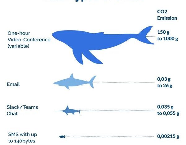 - Even a simple message on platforms like Slack or Teams produces around 0.055g of CO₂.