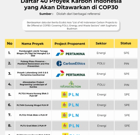 Indonesia bersiap tampil ambisius di Konferensi Perubahan Iklim PBB (COP30) dengan memamerkan 40 proyek karbon unggulan yang siap menarik perhatian investor global. Langkah ini bukan sekadar pamer komitmen, melainkan penegasan posisi Indonesia sebagai pemimpin dalam upaya dekarbonisasi dan ekonomi hijau, sekaligus membuka pintu lebar bagi perdagangan karbon dan investasi berkelanjutan.