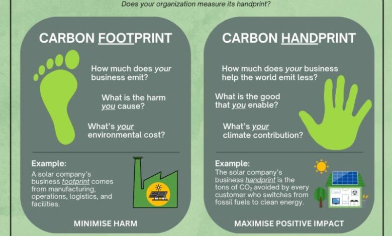 The Renewable Energy Example: A solar panel manufacturer has a footprint from its factory and transport. However, its handprint is massive: it includes every ton of CO2 avoided when a customer switches from coal to clean power.