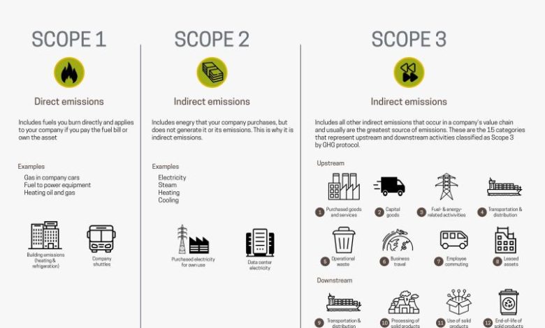 - Scope 1: The emissions a company directly controls fuel burned in company vehicles, on-site manufacturing, or industrial processes.