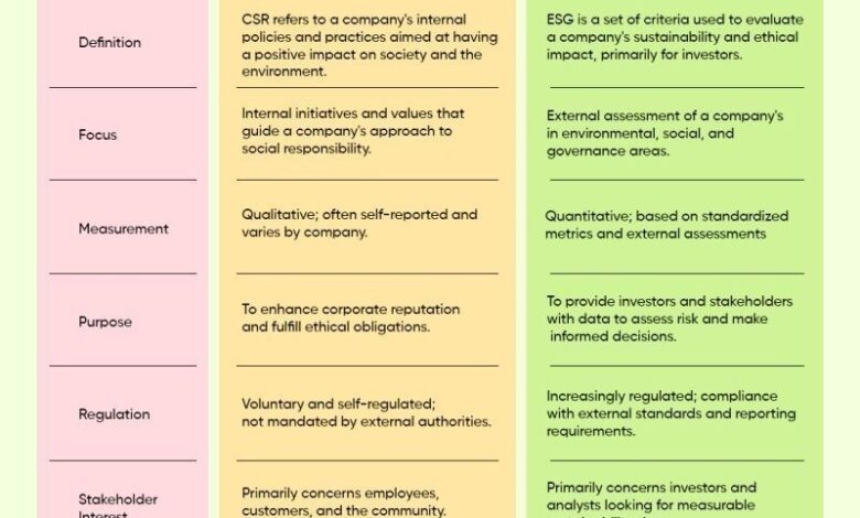 - Compliance vs. Strategy: Because of the legal mandate, CSR is often viewed through a compliance lens. Companies often focus on meeting the minimum requirements rather than integrating CSR into their core business strategy. ESG, on the other hand, is seen as a strategic choice to improve a company’s financial performance and reputation.