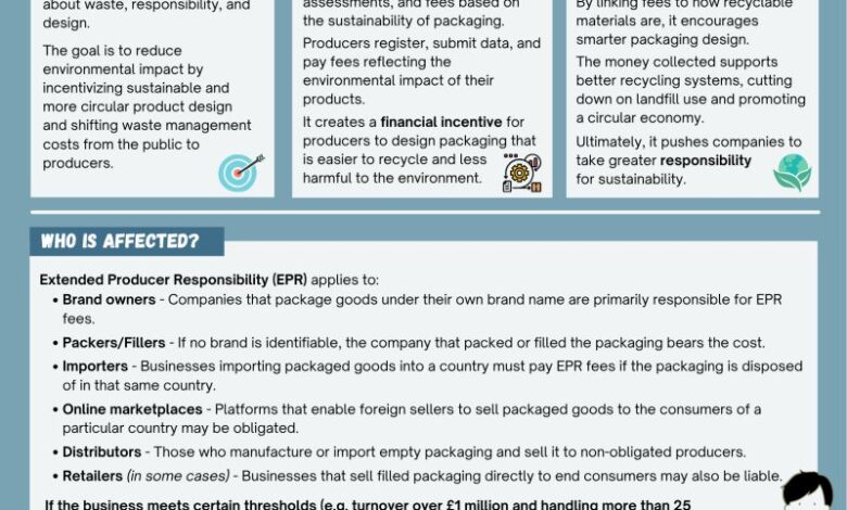 - Eco-modulation Fees: In some regions, producers are charged variable fees based on their packaging. For example, a company using easily recyclable materials might pay a lower fee, while one using difficult-to-recycle materials would pay a higher one.