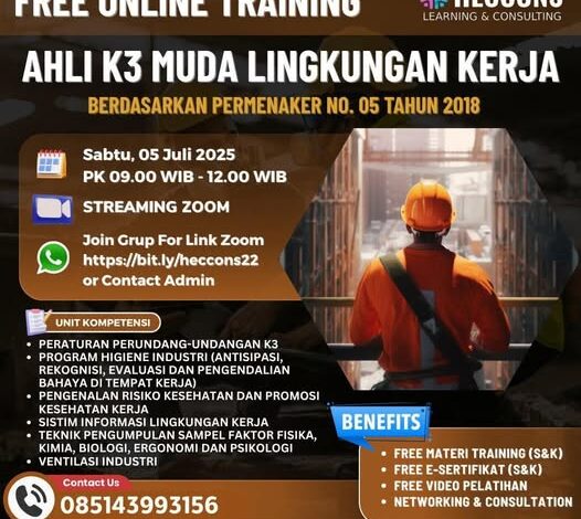 Fee Online Training Ahli K3 Muda Lingkungan Kerja