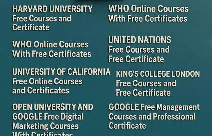 World Health Organization Free online Courses (10, 000 plus) and Free Certificates https://lnkd.in/dKDaSM7R