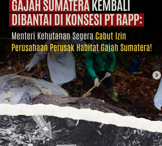 Gajah Sumatera kembali dibantai dikonsesi PT RAPP