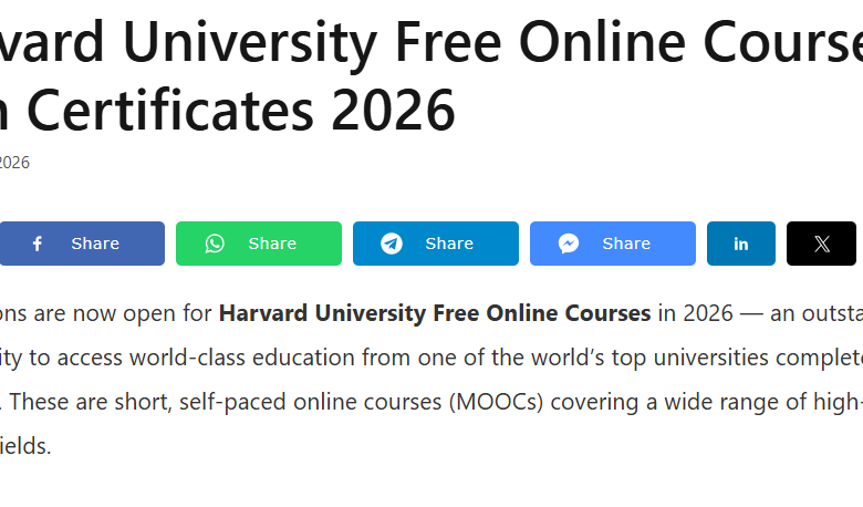 Applications are now open for Harvard University Free Online Courses in 2026 an outstanding opportunity to access world-class education from one of the world’s top universities completely free of charge. These are short, self-paced online courses (MOOCs) covering a wide range of high-demand fields.