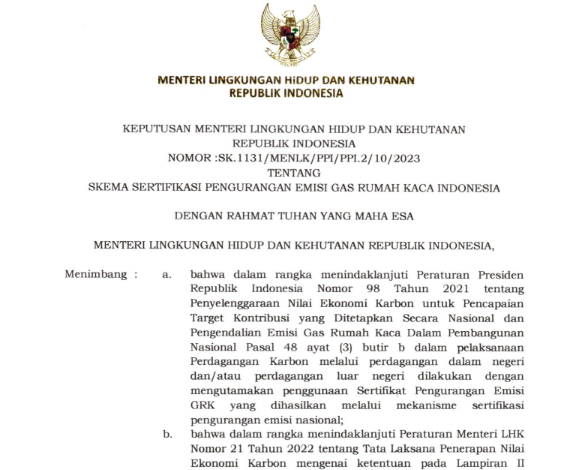 Tentang : Kepmen LHK Tentang Skema Sertifikasi Pengurangan Emisi Gas Rumah Kaca Indonesia