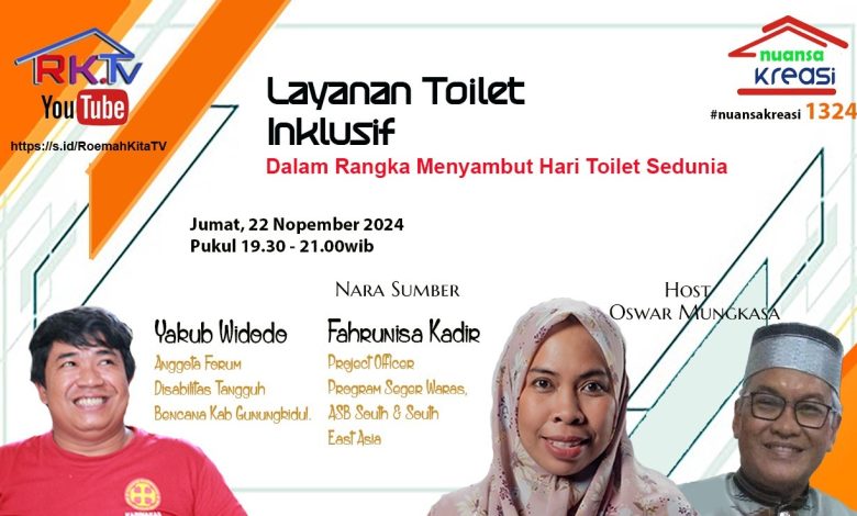 Bersama Yakub Widodo (Anggota Forum Disabilitas Tangguh Gunungkidul) dan Fahrunisa Kadir (Project Officer Program Seger Waras, ASB South & South East Asia), mari kita bahas bagaimana menciptakan layanan toilet yang benar-benar inklusif untuk semua!