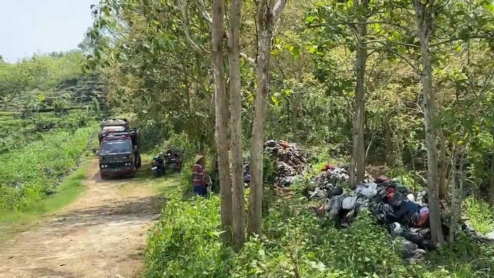 Lima truk sampah dari jogja terciduk buang sampah di hutan jati gunungkidul