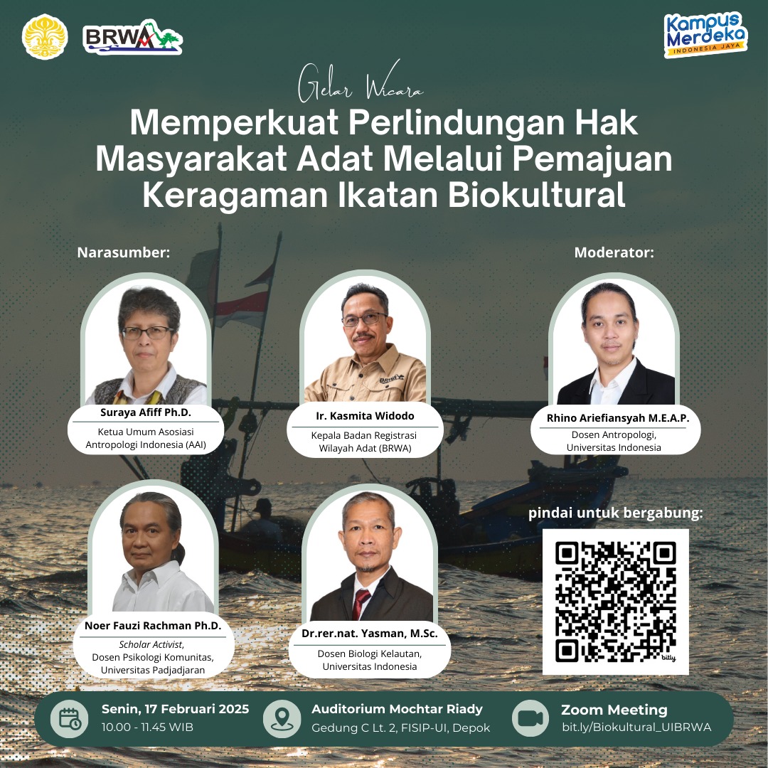 Badan Registrasi Wilayah Adat (BRWA) dan Prodi Antropologi Sosial kembali berkolaborasi untuk melibatkan mahasiswa/i Antropologi Sosial, Biologi, & Geografi dalam gerakan sosial khususnya penguatan praktik kelola konservasi berbasis pengetahuan-kearifan lokal komunitas adat melalui kajian transdisiplin dan aksi kolaboratif.