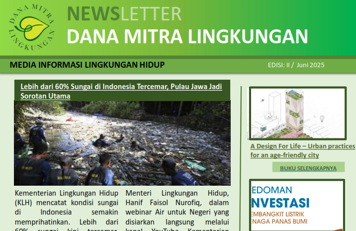Newsletter Dana Mitra Lingkungan Edisi II bulan Juni 2025 dibuat sebagai wadah penyampaian data, informasi dan pengetahuan terkait lingkungan hidup yang tersaji pada website Dana Mitra Lingkungan secara berkala dalam periode dua minggu.
