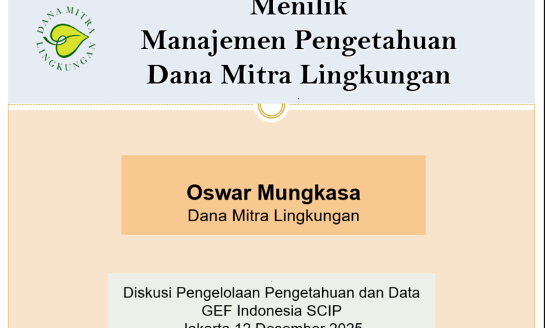 Paparan ini membahas konsep dan penerapan Manajemen Pengetahuan (Knowledge Management/KM) dalam konteks Dana Mitra Lingkungan (DML). Manajemen pengetahuan dipahami sebagai upaya sistematis untuk mengelola pengetahuan agar dapat dikumpulkan, diolah, dibagikan, dan dimanfaatkan secara optimal oleh seluruh pemangku kepentingan.