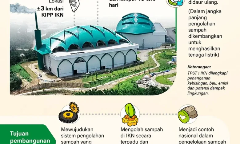 Pemerintah resmi menyelesaikan pembangunan Tempat Pengolahan Sampah Terpadu (TPST) 1 di Kawasan Inti Pusat Pemerintahan (KIPP) Ibu Kota Nusantara (IKN) pada Februari 2025. Fasilitas ini menjadi infrastruktur pengelolaan sampah modern pertama di kawasan IKN yang dirancang untuk mendukung prinsip kota berkelanjutan.