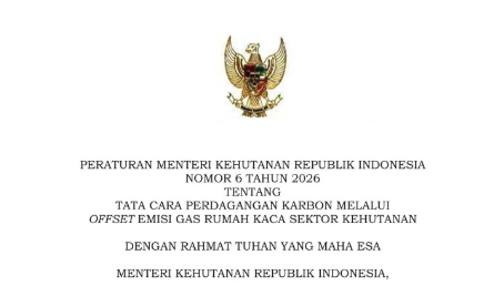 Peraturan Menteri Kehutanan Republik Indonesia nomor 6 tahun 2026 tentang tata cara perdagangan karbon melalui offset emisi gas rumah kaca sektor kehutanan