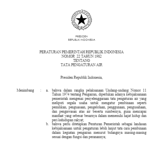 Peraturan Pemerintah (PP) Nomor 22 Tahun 1982 tentang Tata Pengaturan Air