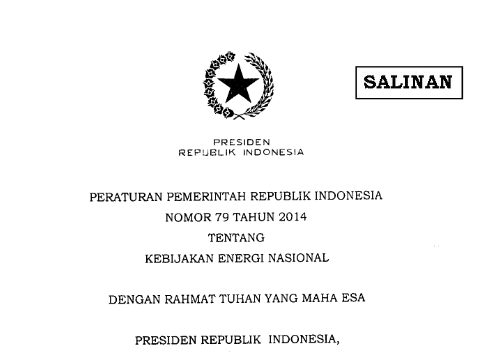Peraturan Pemerintah (PP) Nomor 79 Tahun 2014 tentang Kebijakan Energi Nasional