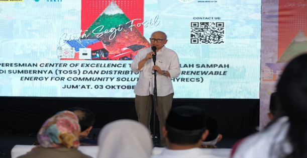 (Jum’at, 03 Oktober 2025) – 50 persen kegiatan peresmian Pusat Pembelajaran (center of excellence) ini menggunakan energi listrik yang bersumber dari sampah dan matahari. Selain itu, kegiatan ini juga dilengkapi dengan demo memasak rendang, goreng pisang, dan panggang kebab dengan menggunakan kompor biomassa dengan bahan bakar terbarukan yang diolah dari sampah organik dan residu biomassa.