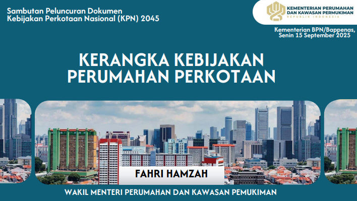 Ketersediaan perumahan yang layak, terjangkau, dan inklusif menjadi salah satu pilar penting dalam mewujudkan Kebijakan Perkotaan Nasional (KPN) 2045. Wakil Menteri Perumahan dan Kawasan Permukiman menegaskan bahwa pembangunan kota tidak bisa dilepaskan dari persoalan hunian masyarakat.