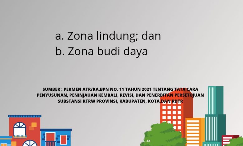 Pembagian zona ini mengacu pada Peraturan Menteri ATR/Kepala BPN No. 11 Tahun 2021, yang mengatur tata cara penyusunan, peninjauan kembali, revisi, dan penerbitan persetujuan substansi Rencana Tata Ruang Wilayah (RTRW) di tingkat provinsi, kabupaten, kota, dan kawasan strategis nasional.
