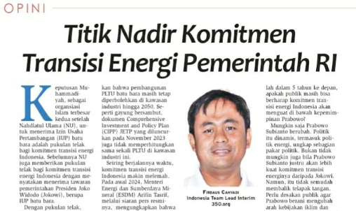 Titik Nadir Komitmen Transisi Energi Pemerintah RI