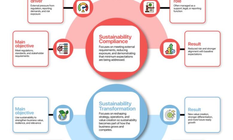What is the difference between treating sustainability as compliance versus using it as a transformation driver?