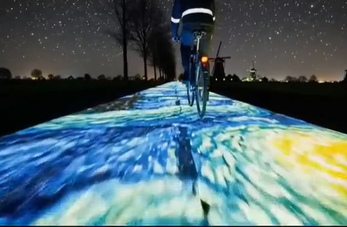 And sometimes, that future begins with a bicycle path that looks like a painting in the dark.